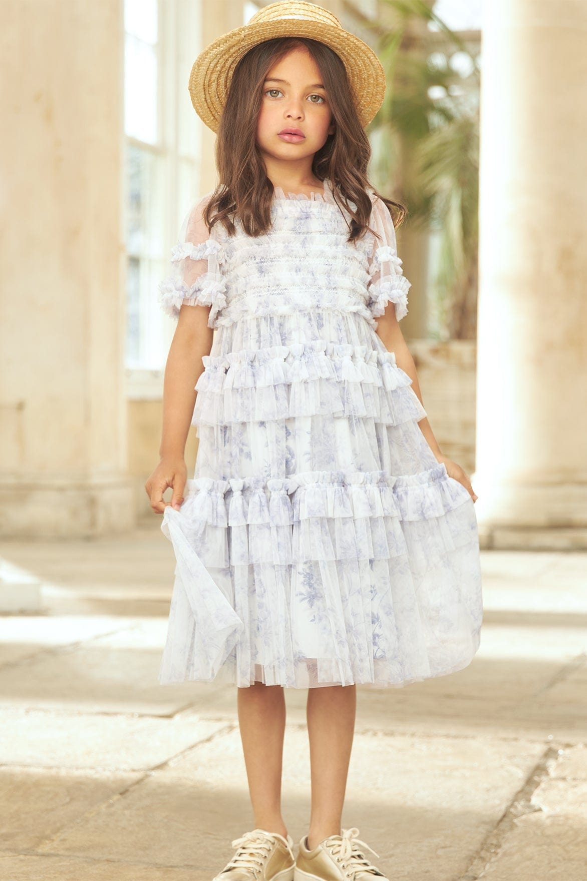 Rambling Roses Peaches Smocked Kids Dress Multi Needle Thread